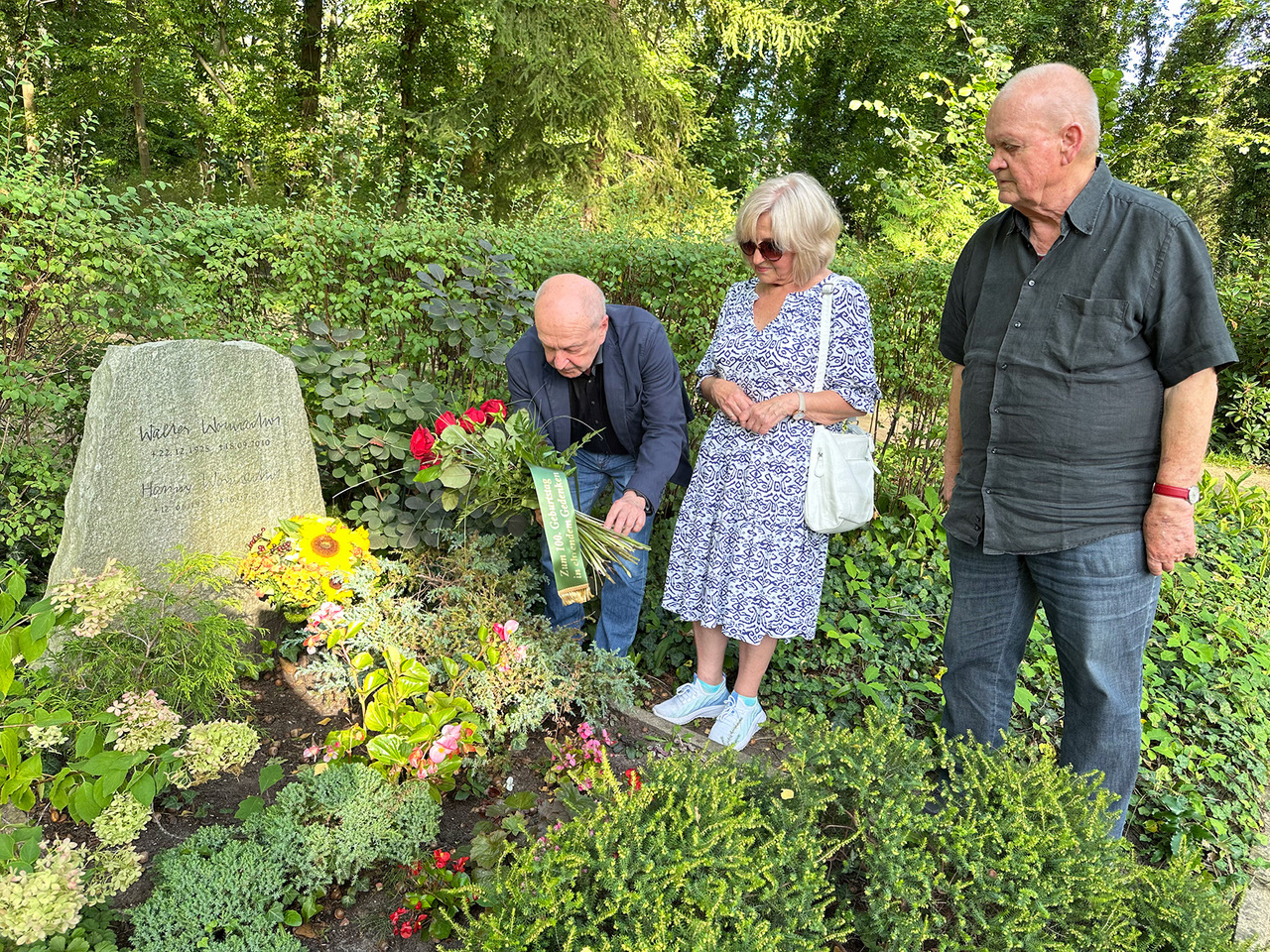 Im Anschluss an die Zusammenkunft legten Mitglieder des Freundeskreises ein Blumengebinde am Grab von Walter Womacka nieder.